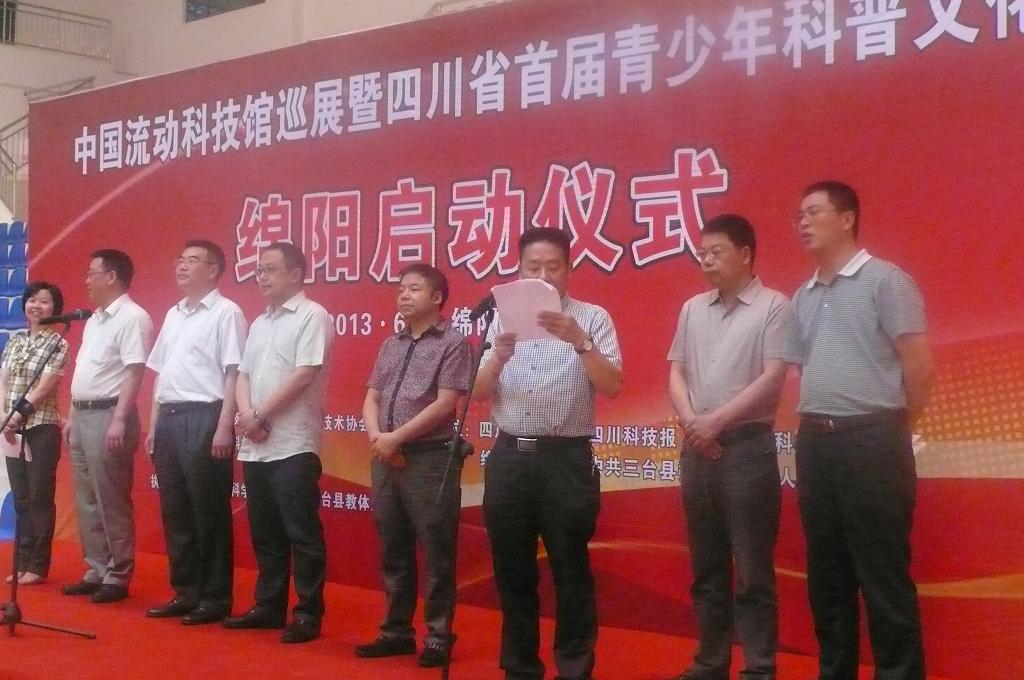 2013 年6月20日,中国流动科技馆四川巡展暨四川省首青少年科普文化节绵阳启动仪式在三台县体育馆举行。四川省科协党组成员、纪检专员李大用出席启动仪式并讲话,绵阳市人民政府副市长谢晓东出席并宣布“中国流动科技馆四川巡展暨四川省首青少年科普文化节在绵阳正式启动”。市科协副主席何仁毅主持启动仪式。